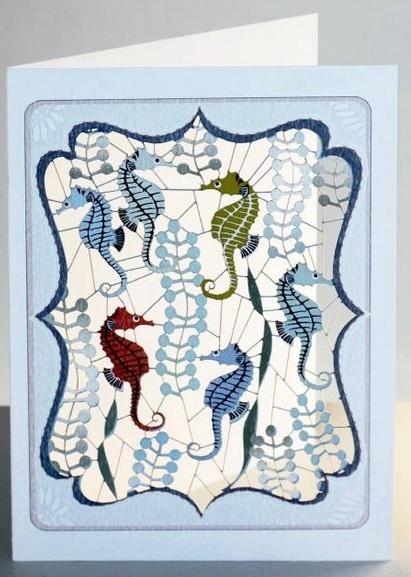 Opakowanie Karnet PM826 wycinany + koperta Koniki morskie