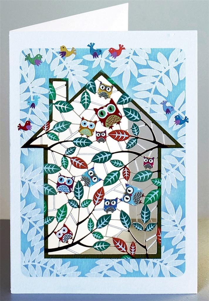 Opakowanie Karnet PM830 wycinany + koperta Dom - sowy