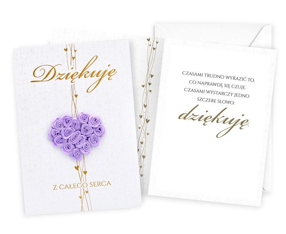 Kartka Dream Cards "Dziękuję z całego serca" DK-1239 Kartka B6 z ozdobnej serii Dream Cards - nieduża, ale robi wrażenie dzięki atrakcyjnej kolorystyce i ciekawym zdobieniom. To idealny wybór łączący przyjazną cenę z jakością. Cechy szczególne: wielkość: B6, 16.6 x 11.7 cm po złożeniu, koperta: w zestawie, kolorowa, zdobienia: kolorowe, różnorodne, bogate (w zależności od wzoru: przyklejane dekoracje, elementy biżuteryjne, odstawniki, metaliczne folie, tłoczenia itp.), okazja: Podziękowania