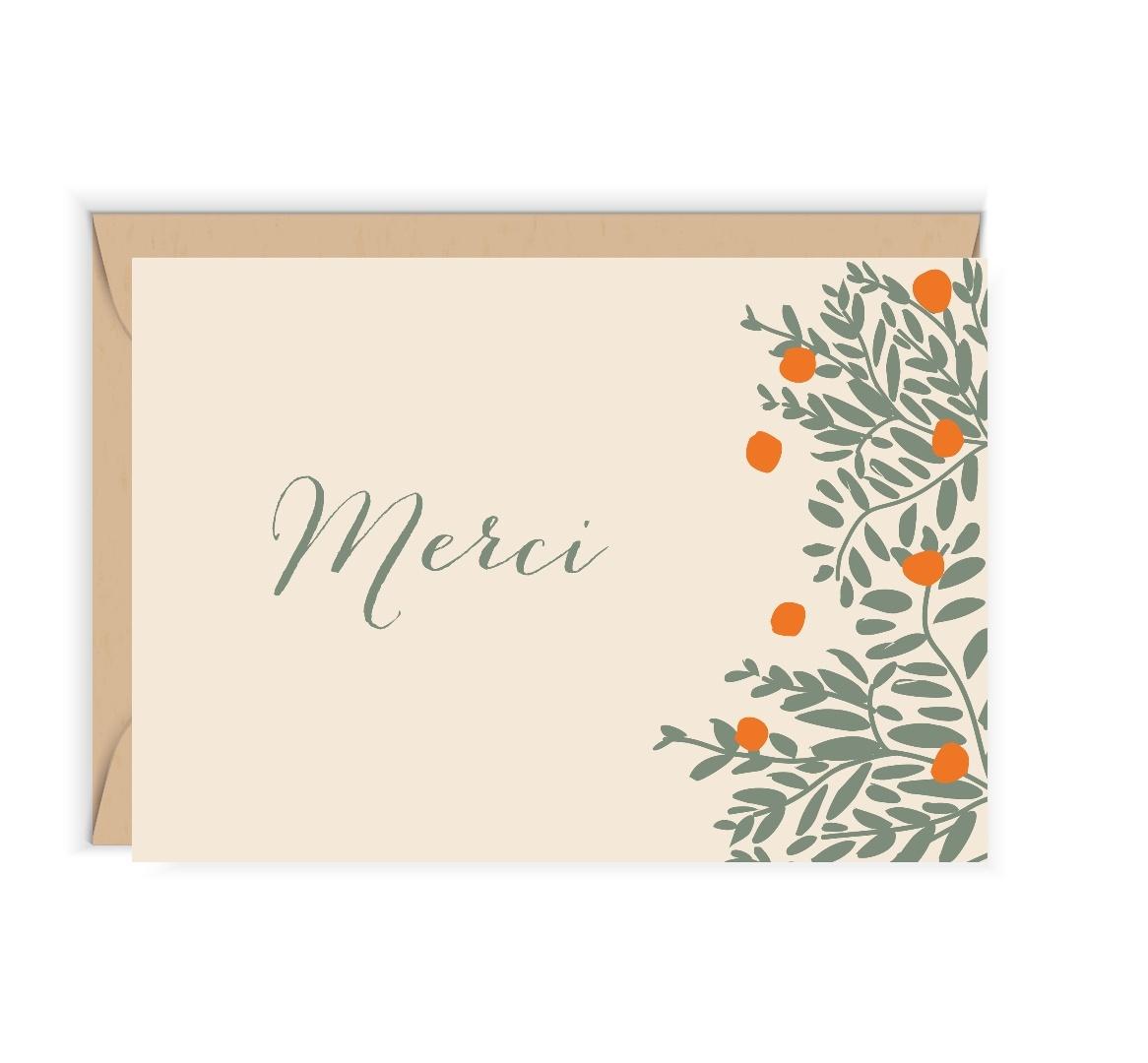 Otwierana kartka, pusta w środku, wykonana na papierze (z certyfikatem EFC) z wyraźnie widoczną fakturą. W zestawie ekologiczna koperta.