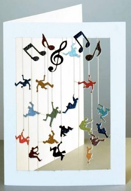 Opakowanie Karnet PP003 wycinany + koperta Mali ludzie i nuty