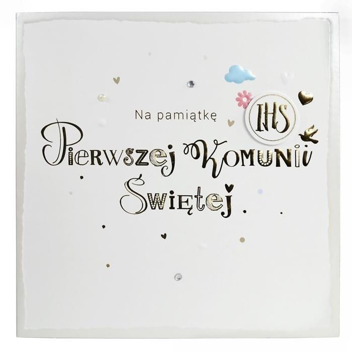 Kartki z serii Primus, to kartki najwyższej jakości, pięknie zdobione m.in złotą lub srebrną folią,tłoczeniami, czy wycinkami laserowymi. Idealne na najważniejsze okazje w życiu, takie jak ślub, komunia. W środku każdej kartki znajdują się dobrane do okazji życzenia, a do kartki dołączona jest dopasowana koperta. Cechy szczególne: wielkość: niestendardowa, prostokątna, kwadratowa, zdobienia: dekoracje ze złotej folii, doklejane koraliki, tłoczenia koperta: dopasowana w komplecie, wnętrze kartki: życzenia w środku, okazja: komunia.