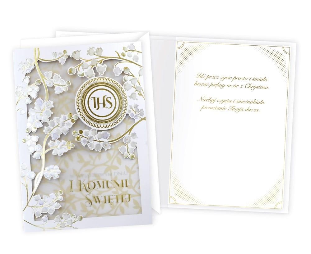 Kartki z serii Primus, to kartki najwyższej jakości, pięknie zdobione m.in złotą lub srebrną folią, tłoczeniami, czy wycinkami laserowymi. Idealne na najważniejsze okazje w życiu, takie jak ślub, komunia. W środku każdej kartki znajdują się dobrane do okazji życzenia, a do kartki dołączona jest dopasowana koperta. Cechy szczególne: wielkość: niestandardowa, prostokątna, kwadratowa, zdobienia: dekoracje ze złotej folii, doklejane koraliki, tłoczenia koperta: dopasowana w komplecie, wnętrze kartki: życzenia w środku, okazja: komunia