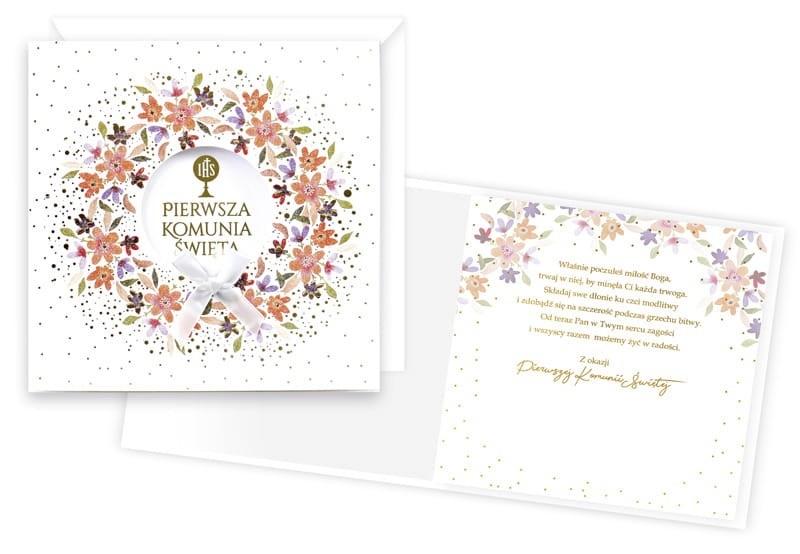 Kartki z serii Primus, to kartki najwyższej jakości, pięknie zdobione m.in złotą lub srebrną folią, tłoczeniami, czy wycinkami laserowymi. Idealne na najważniejsze okazje w życiu, takie jak ślub, komunia. W środku każdej kartki znajdują się dobrane do okazji życzenia, a do kartki dołączona jest dopasowana koperta. Cechy szczególne: wielkość: niestandardowa, prostokątna, kwadratowa, zdobienia: dekoracje ze złotej folii, doklejane koraliki, tłoczenia koperta: dopasowana w komplecie, wnętrze kartki: życzenia w środku, okazja: komunia