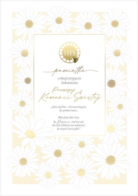Kartka Primus 0220 Komunia Kartki z serii Primus, to kartki najwyższej jakości, pięknie zdobione m.in złotą lub srebrną folią, tłoczeniami, czy wycinkami laserowymi. Idealne na najważniejsze okazje w życiu, takie jak ślub, komunia. W środku każdej kartki znajdują się dobrane do okazji życzenia, a do kartki dołączona jest dopasowana koperta. Cechy szczególne: wielkość: niestandardowa, prostokątna, kwadratowa, zdobienia: dekoracje ze złotej folii, doklejane koraliki, tłoczenia koperta: dopasowana w komplecie, wnętrze kartki: życzenia w środku, okazja: komunia