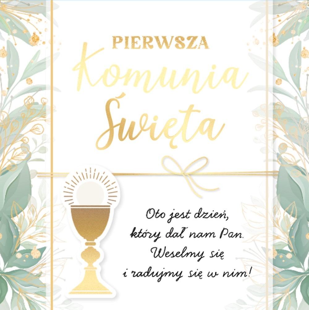 Kartka Primus 0235 na I Komunię Świętą Kartki z serii Primus, to kartki najwyższej jakości, pięknie zdobione złotą lub srebrną folią, tłoczeniami, czy wycinkami laserowymi. W środku każdej kartki znajdują się dobrane do okazji życzenia, a do kartki dołączona jest dopasowana koperta. Cechy szczególne: wymiary: 175 x 175 mm (po złożeniu) zdobienia: dekoracje ze złotej folii, doklejane koraliki, tłoczenia koperta: dopasowana w komplecie, wnętrze kartki: życzenia w środku, okazja: Komunia