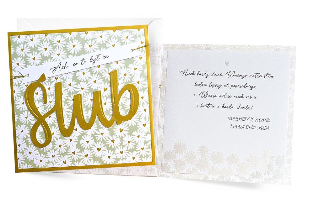 W środku każdej kartki znajdują się dobrane do okazji życzenia, a do kartki dołączona jest dopasowana koperta.