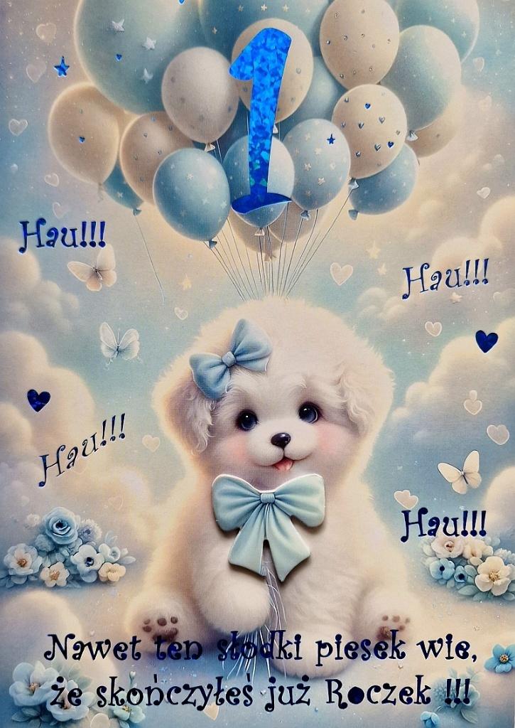 Opakowanie Karnet Roczek chłopiec piesek 3K