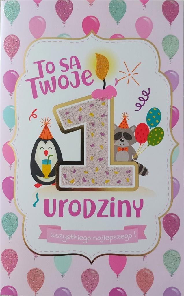 Klasyczny karnet na pierwsze urodzinki. Oryginalna grafika dla małej księżniczki. Uszlachetniony lakierem brokatowym oraz wysokiej jakości hotstampingiem (złocenie). Karnet zawiera życzenia i kopertę.