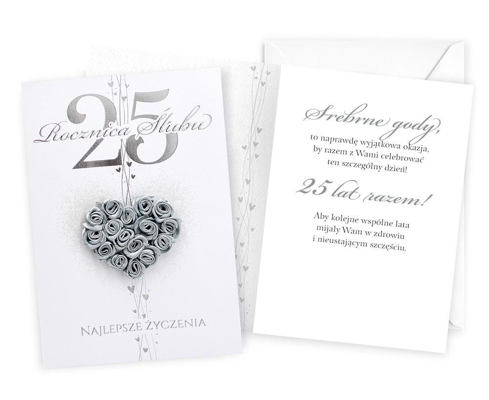 Kartka Dream Cards "25 rocznica ślubu" DK-1235 Kartka B6 z ozdobnej serii Dream Cards na urodziny z wymiennymi cyframi - nieduża, ale robi wrażenie dzięki atrakcyjnej kolorystyce i ciekawym zdobieniom. To idealny wybór łączący przyjazną cenę z jakością. Cechy szczególne: wielkość: B6, 16.6 x 11.7 cm po złożeniu, koperta: w zestawie, kolorowa, zdobienia: kolorowe, różnorodne, bogate (w zależności od wzoru: przyklejane dekoracje, elementy biżuteryjne, odstawniki, metaliczne folie, tłoczenia itp.), okazja: Rocznica ślubu