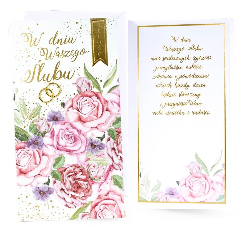 Każda kartka w kolekcji Passion Moments to małe arcydzieło - wyjątkowe i niepowtarzalne, piękne wizualnie. Kartki PM są bardzo bogato zdobione, a jednocześnie skromne i stylowe, cały efekt tkwi w detalach i doskonałym wykonaniu. W zależności od wzoru, na kartkach znajdują się dekoracje ze złotej, srebrnej, perłowej lub holograficznej folii, a także doklejki biżuteryjne, kokardki, brokat, laserowe wycięcia, wstążeczki i inne dodatki. Wnętrze karnetu to zawsze atrakcyjna grafika i tekst życzeń. Kartki mają w komplecie dopasowaną kopertę. Cechy szczególne: zdobienie: przynajmniej dwie folie (metaliczne/perłowe/holograficzne), brokat, elementy doklejane, wycięcia laserowe, wstążeczki - w zależności od wzoru, wnętrze: z delikatną grafiką, wyjątkowe życzenia w środku, w komplecie: dopasowana kolorystycznie koperta, okazja: Ślub Wymiary karnetu po złożeniu: 11,4 x 21,5 cm.