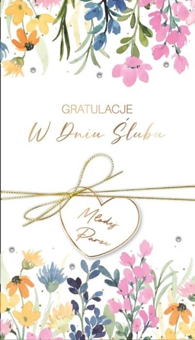 Karnet okolicznościowy z kopertą i życzeniami w środku.