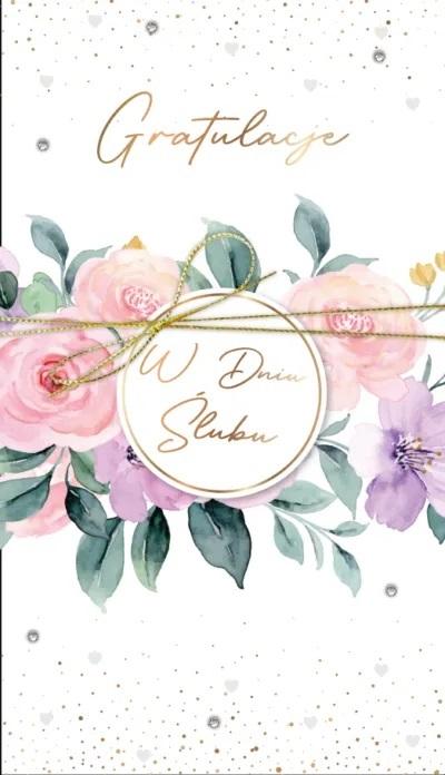 Karnet okolicznościowy z kopertą i życzeniami w środku.