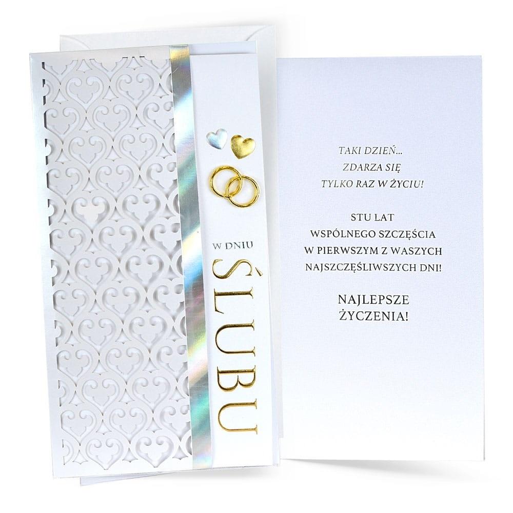 Każda kartka w kolekcji Passion Moments to małe arcydzieło - wyjątkowe i niepowtarzalne, piękne wizualnie. Kartki PM są bardzo bogato zdobione, a jednocześnie skromne i stylowe, cały efekt tkwi w detalach i doskonałym wykonaniu. W zależności od wzoru, na kartkach znajdują się dekoracje ze złotej, srebrnej, perłowej lub holograficznej folii, a także doklejki biżuteryjne, kokardki, brokat, laserowe wycięcia, wstążeczki i inne dodatki. Wnętrze karnetu to zawsze atrakcyjna grafika i tekst życzeń. Kartki mają w komplecie dopasowaną kopertę. Cechy szczególne: zdobienie: przynajmniej dwie folie (metaliczne/perłowe/holograficzne), brokat, elementy doklejane, wycięcia laserowe, wstążeczki - w zależności od wzoru, wnętrze: z delikatną grafiką, wyjątkowe życzenia w środku, w komplecie: dopasowana kolorystycznie koperta, okazja: Ślub Wymiary karnetu po złożeniu: 11,4 x 21,5 cm.