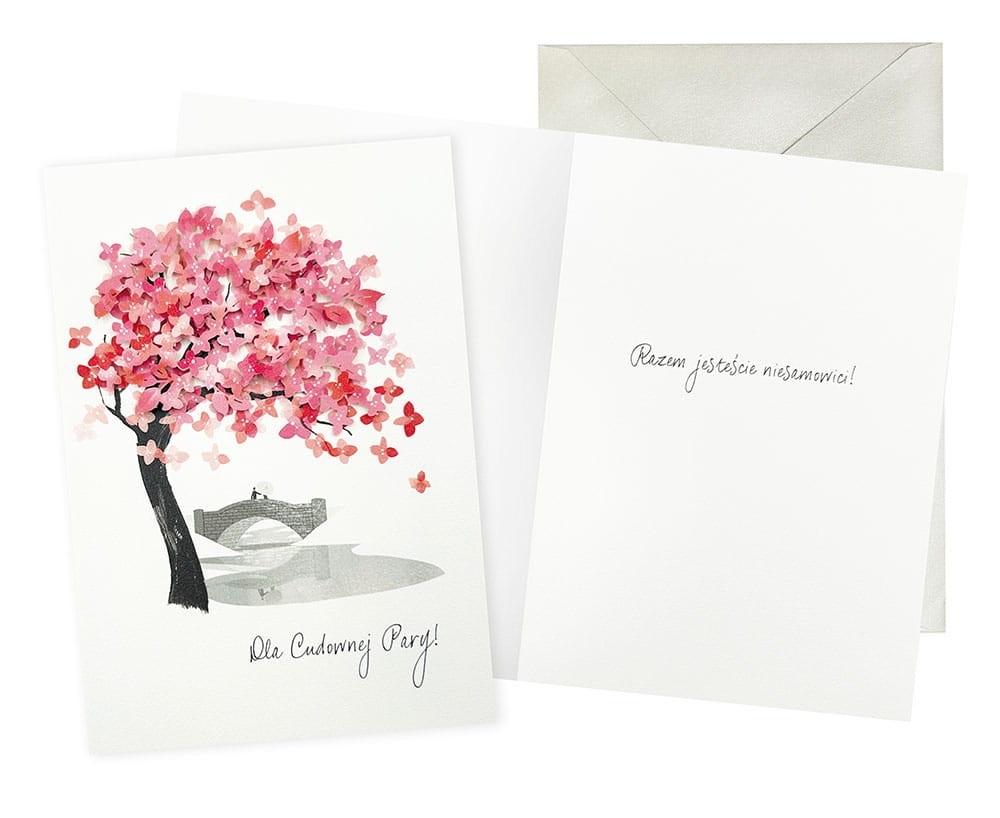 Karnet SCH-005 "W dniu ślubu" Kartka B6 z ozdobnej serii Signature Cards - nieduża, ale robi wrażenie dzięki atrakcyjnej kolorystyce i ciekawym zdobieniom. Cechy szczególne: wielkość: B6, 16.6 x 11.7 cm po złożeniu, koperta: dopasowana w zestawie, zdobiona metaliczną folią zdobienia: kolorowe, różnorodne, bogate (w zależności od wzoru: przyklejane przestrzenne dekoracje, brokat, metaliczne folie, tłoczenia itp.), okazja: ślub