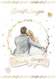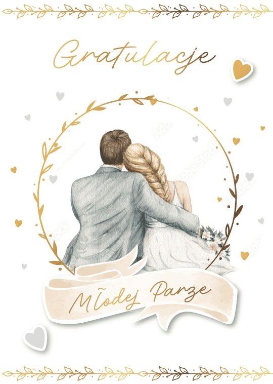 Karnet Ślubny z kopertą i tekstem wewnątrz i miejscem na osobiste życzenia.