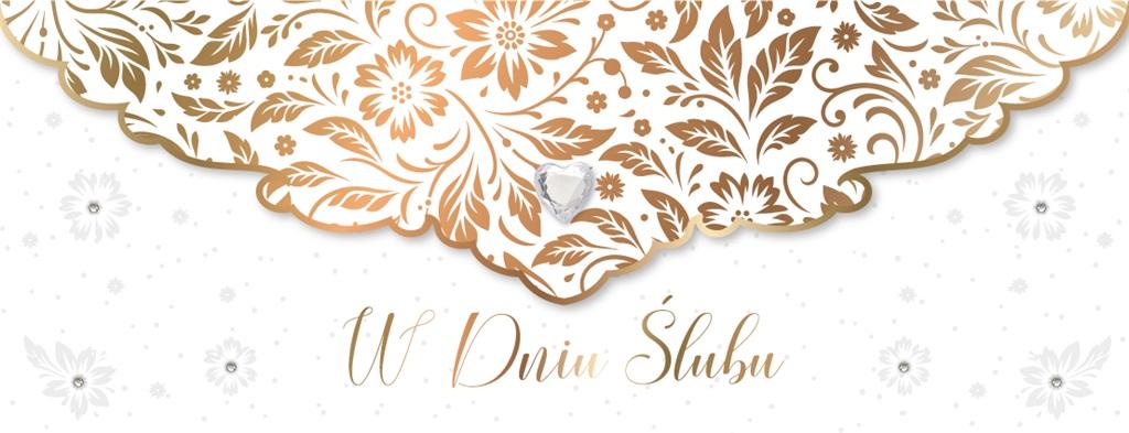 Luksusowy karnet Ślubny z elementami złocenia lub srebrzenia, wykonany na specjalnym, grubym kartonie z licznymi dodatkami.