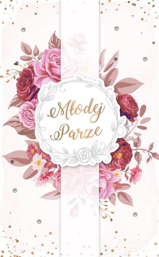 Luksusowy karnet Ślubny z elementami złocenia lub srebrzenia, wykonany na specjalnym, grubym kartonie z licznymi dodatkami.