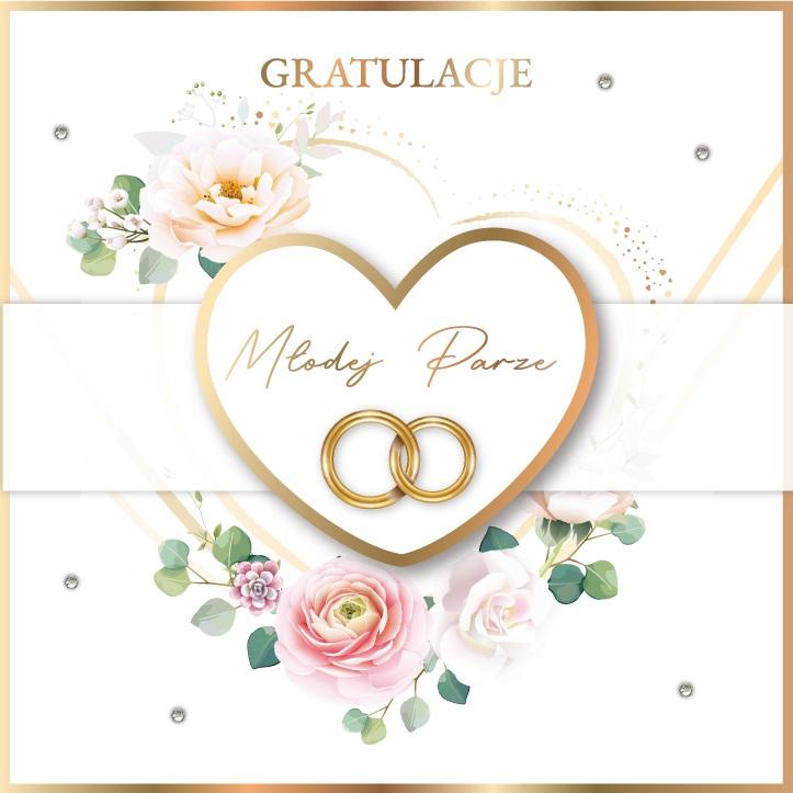 Luksusowy karnet Ślubny z elementami złocenia lub srebrzenia, wykonany na specjalnym, grubym kartonie z licznymi dodatkami.