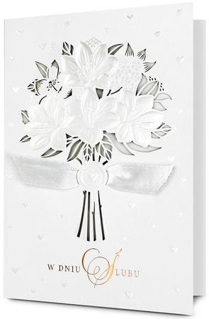 Kartka jest bogato i różnorodnie zdobiona (zależnie od wzoru: metaliczna folia, lakier perłowy,