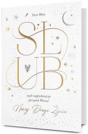 Kartka jest bogato i różnorodnie zdobiona (zależnie od wzoru: metaliczna folia, lakier perłowy,