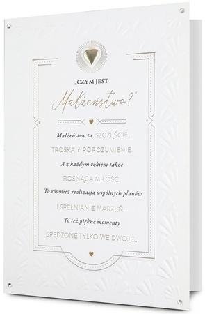 Kartka jest bogato i różnorodnie zdobiona (zależnie od wzoru: metaliczna folia, lakier perłowy,