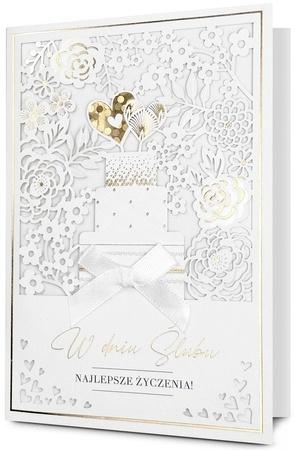 Kartka jest bogato i różnorodnie zdobiona (zależnie od wzoru: metaliczna folia, lakier perłowy,