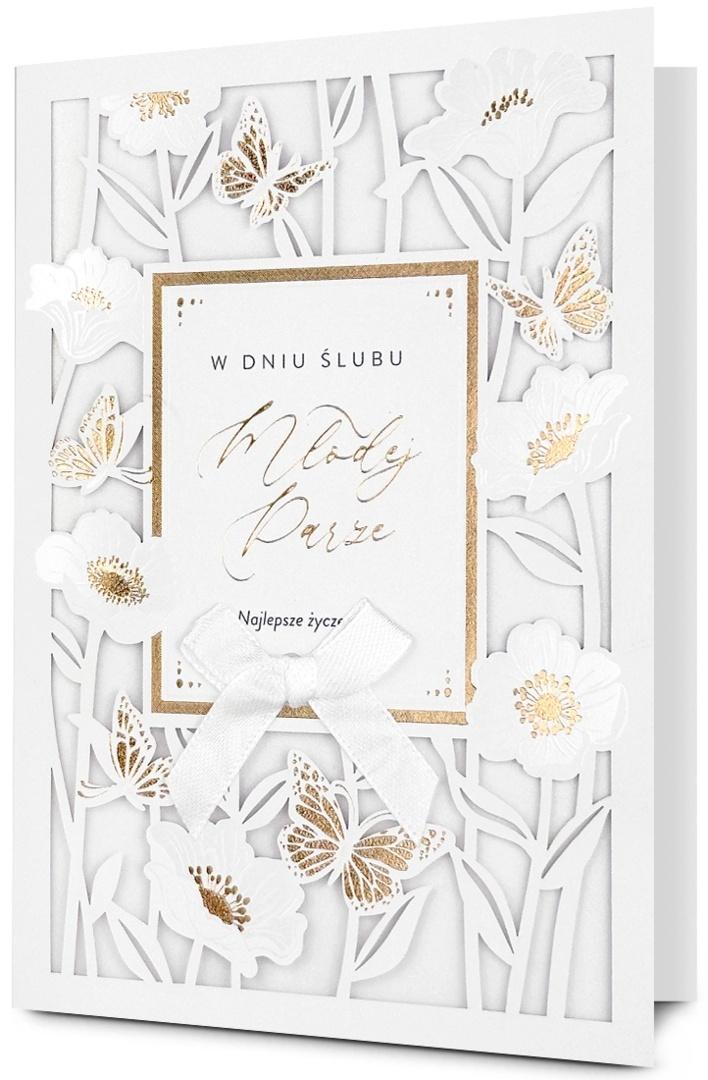 Kartka jest bogato i różnorodnie zdobiona (zależnie od wzoru: metaliczna folia, lakier perłowy,
