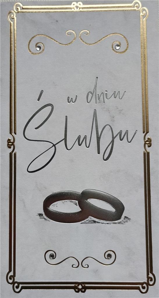 Bogato zdobiony karnet na ślub. Karnet wewnątrz zawiera życzenia.