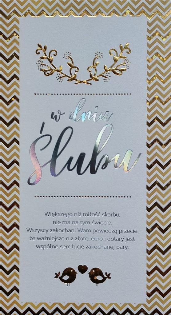 Bogato zdobiony karnet na ślub. Karnet wewnątrz zawiera życzenia.