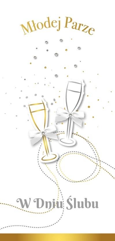 Karnet okolicznościowy z kopertą i życzeniami w środku.