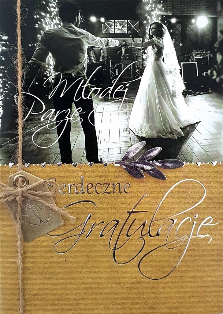 Karnet okolicznościowy z kopertą i życzeniami w środku.