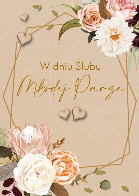 Karnet okolicznościowy z kopertą i życzeniami w środku.