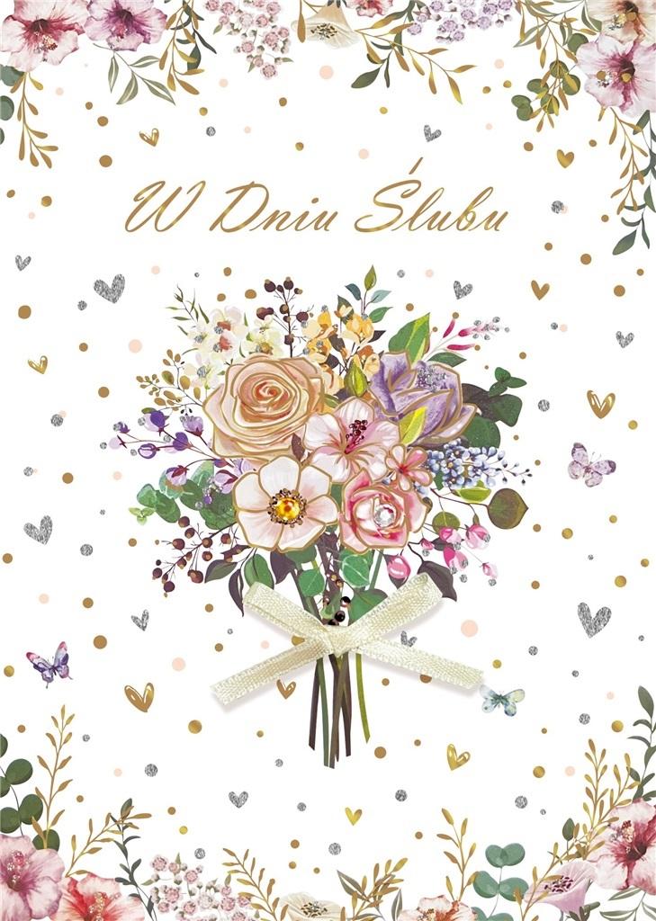 Karnet okolicznościowy z kopertą i życzeniami w środku.
