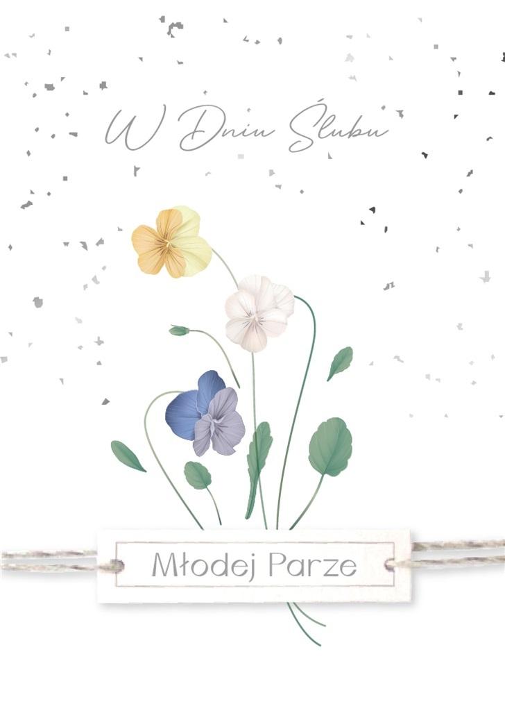 Karnet okolicznościowy z kopertą i życzeniami w środku.