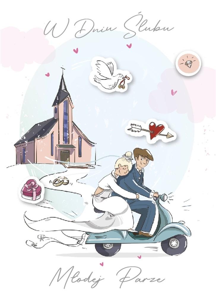 Karnet okolicznościowy z kopertą i życzeniami w środku.