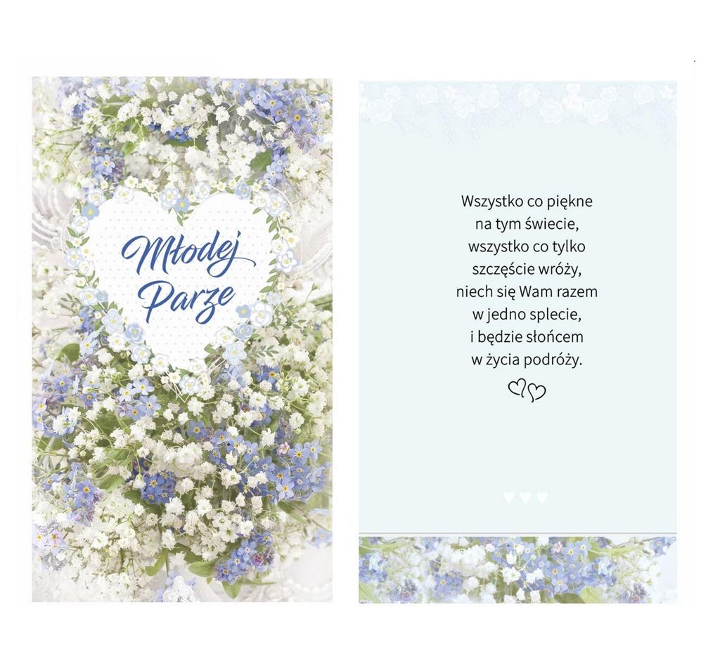 Zestaw Karnet Okolicznościowy Ślub 11,5x19 cm. Zawiera pięknie zdobiony karnet z kopertą.