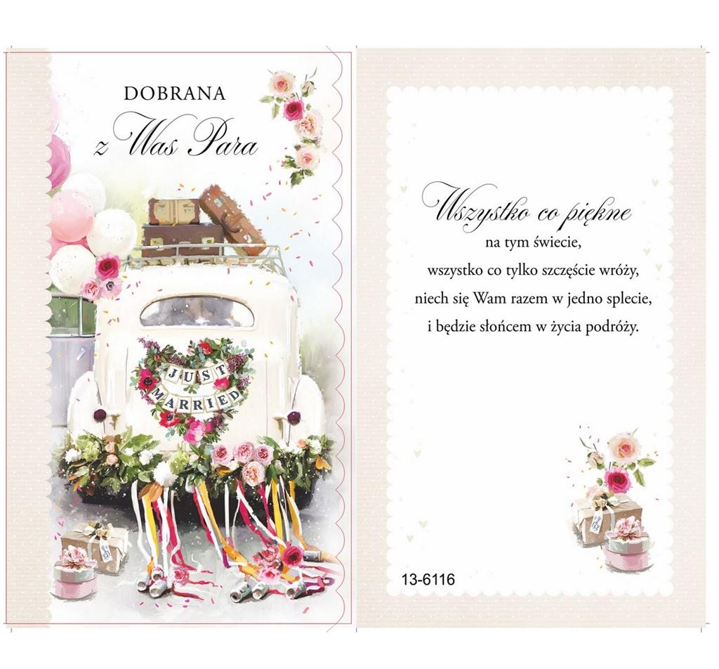 Zestaw Karnet Okolicznościowy Ślub 11,5x19 cm. Zawiera pięknie zdobiony karnet z kopertą.