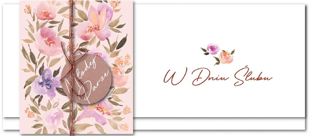 Karnet okolicznościowy z kopertą i życzeniami w środku.