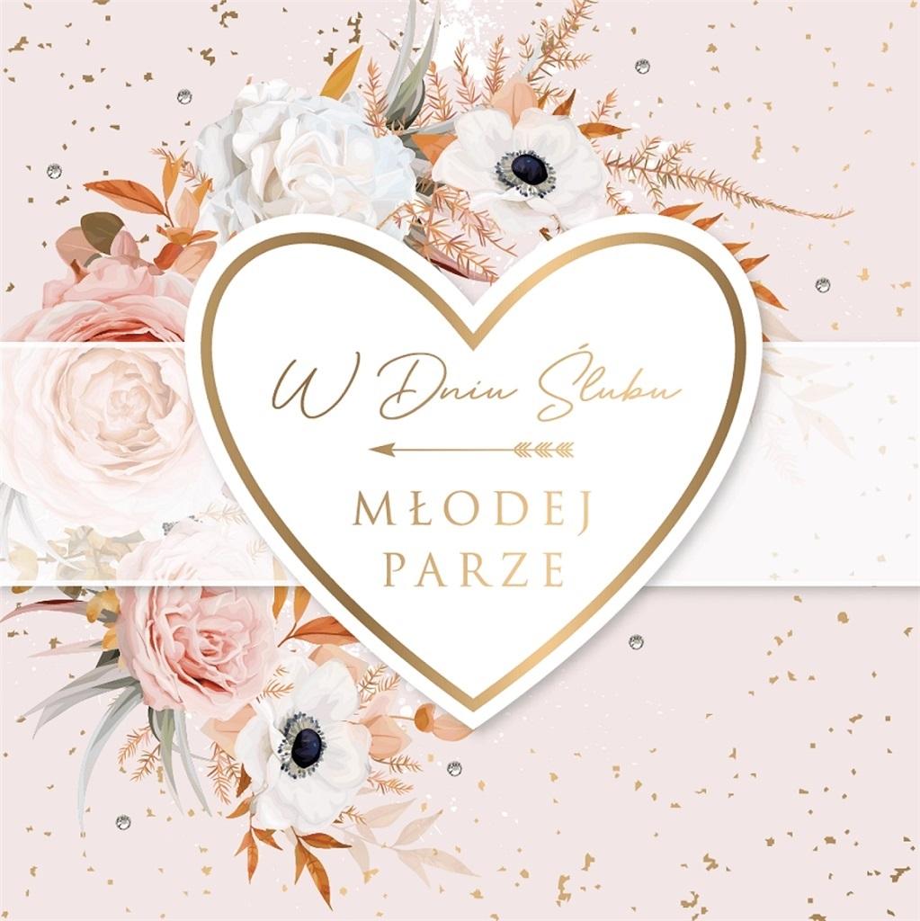 Karnet okolicznościowy z kopertą i życzeniami w środku.