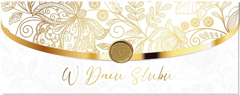 Karnet okolicznościowy z kopertą i życzeniami w środku.