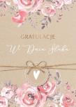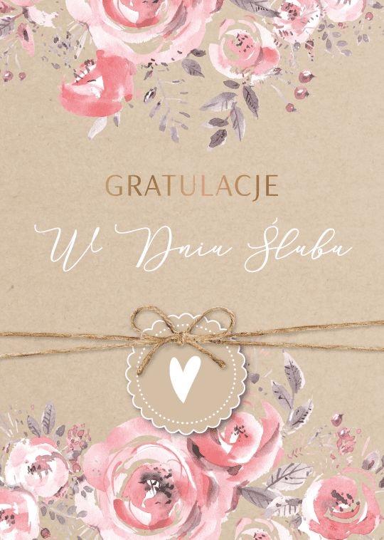 Karnet Ślubny z kopertą i tekstem wewnątrz i miejscem na osobiste życzenia.