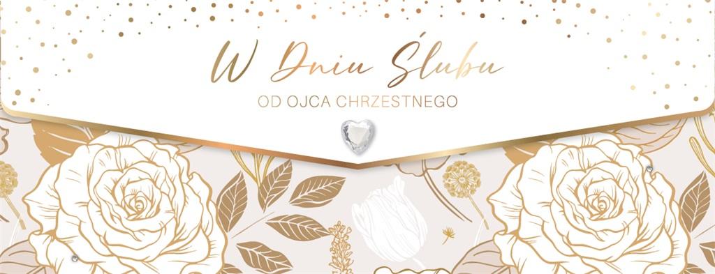 Karnet Dedykowany od Ojca Chrzestnego. Luksusowy karnet Ślubny z elementami złocenia lub srebrzenia, wykonany na specjalnym, grubym kartonie z licznymi dodatkami.