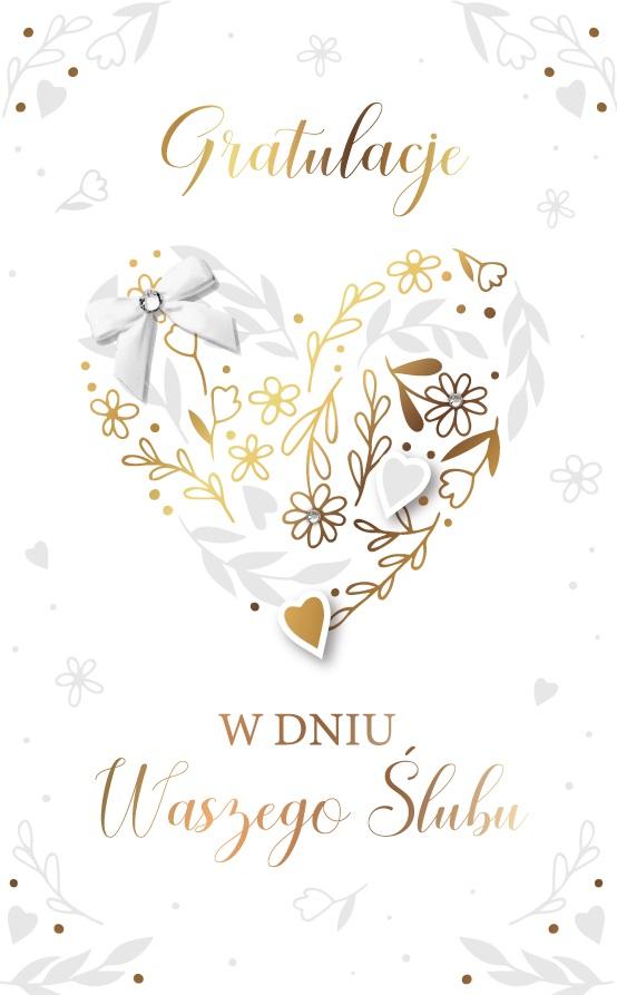 Luksusowy karnet Ślubny z elementami złocenia lub srebrzenia, wykonany na specjalnym, grubym kartonie z licznymi dodatkami.