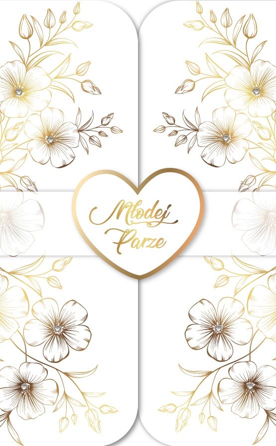 Luksusowy karnet Ślubny z elementami złocenia lub srebrzenia, wykonany na specjalnym, grubym kartonie z licznymi dodatkami.
