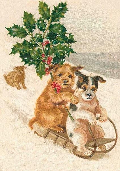 Opakowanie Karnet ST327 B6 + koperta Święta Pieski na sankach