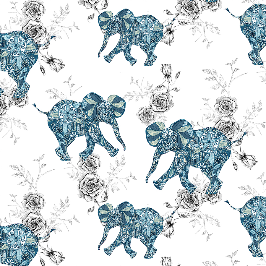 Karnet Swarovski kwadrat Etniczne słonie niebieskie