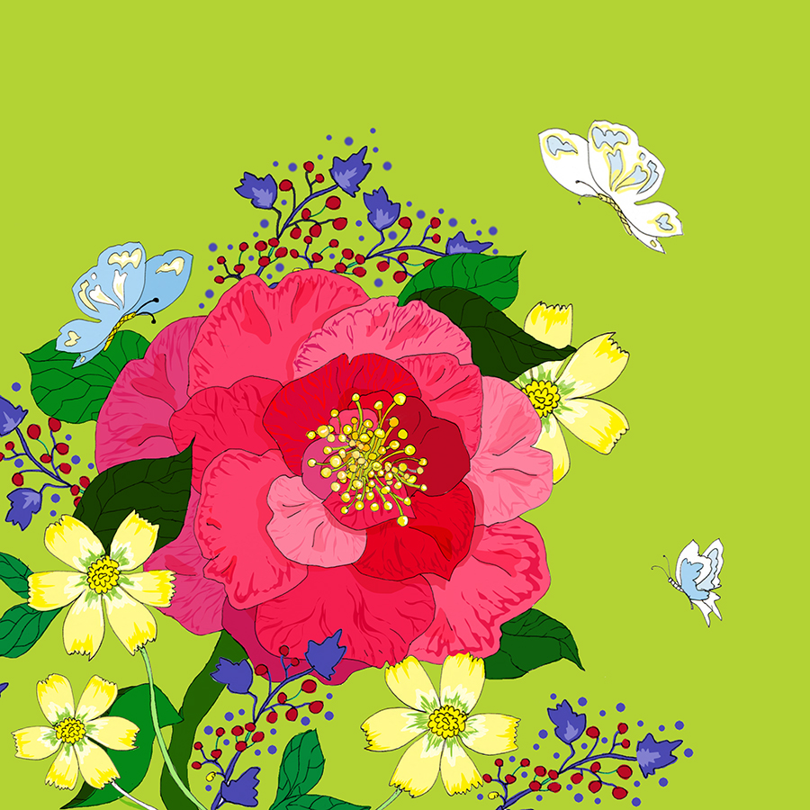 Karnet Swarovski kwadrat Kwiaty- limonka CL0605