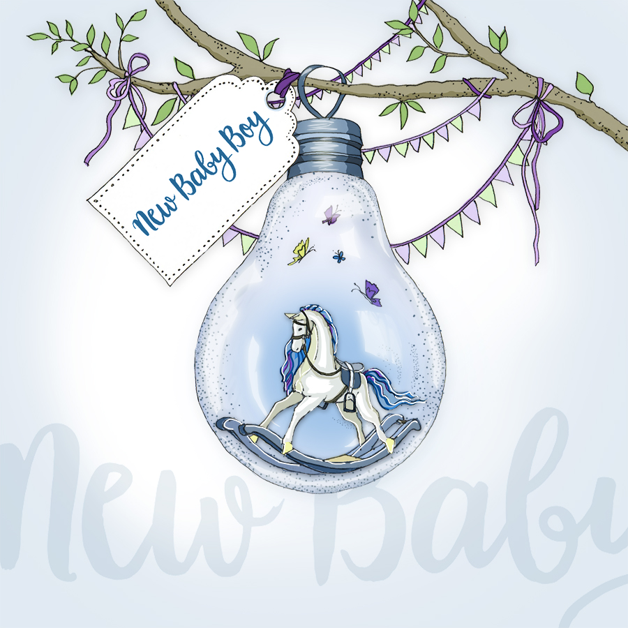 Karnet bez tekstu z kopertą, ręcznie robiony z kryształkiem Swarovski, Narodziny chlopiec Żarówka.