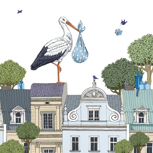 Opakowanie Karnet Swarovski kwadrat Narodziny chłopiec bocian